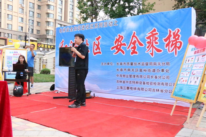 2017年6月24日由長春市質(zhì)量技術監(jiān)督局南關分局聯(lián)合長春市南關區(qū)富裕街道辦事處、吉林省中吉特種設備檢驗檢測有限公司、中海物業(yè)管理有限公司長春分公司、上海三菱電梯有限公司吉林省分公司在中海國際社區(qū)舉辦 “和諧社區(qū),安全乘梯”宣講活動和“電梯應急救援演練”。