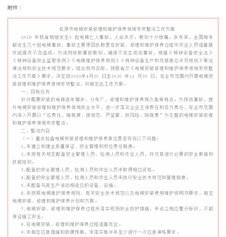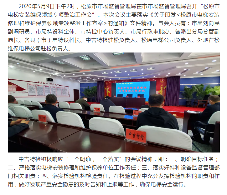 中吉特檢積極響應《松原市電梯安裝維保領域?qū)m椪喂ぷ鲿窌h精神